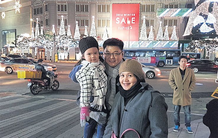 จูงลูกฝ่าลมหนาวที่กรุงโซล