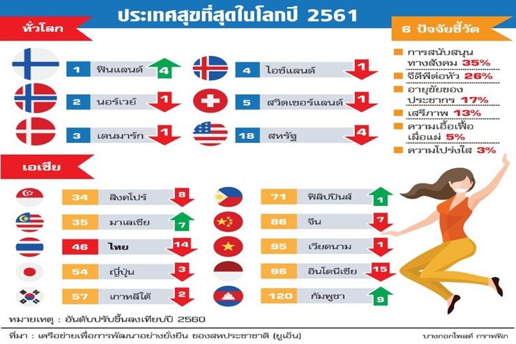 ยูเอ็นเผยอันดับความสุขไทยลดลง ด้านกลุ่มนอร์ดิกพาเหรดครองแชมป์ประเทศสุดแฮปปี้