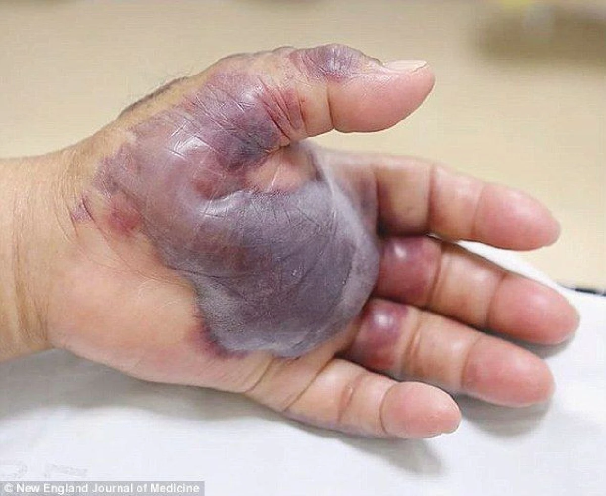 ชายชาวเกาหลีใต้วัย 71 ปี ได้เข้ารักษาพยาบาลจากการติดเชื้ออย่างหนักที่มือซ้าย ในโรงพยาบาลของเมืองจอนจู ห่างจากกรุงโซลเมืองหลวงไปทางใต้ราว 118 ไมล์ โดยมือของเขามีสภาพบวมเป้ง และพุพอง ทั้งบริเวณหน้ามือ และหลังมือ ซึ่งอาการนี้เกิดขึ้นเพียง 12 ชั่วโมง หลังจากที่เขารับประทานปลาดิบเข้าไปโดยใช้มือดังกล่าวหยิบรับประทาน