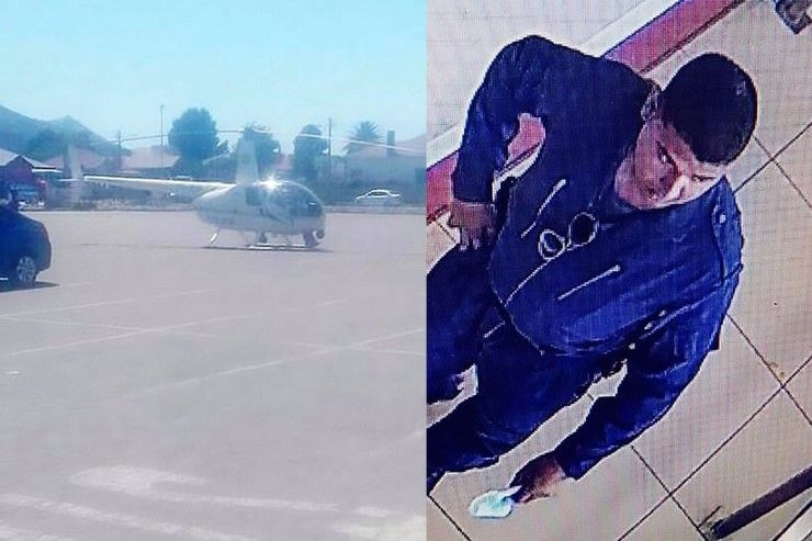 ภาพจากกล้องวงจรปิดแสดงให้เห็นถึงเฮลิคอปเตอร์ขนาดเล็กลำสีขาว ซึ่งมีการระบุข้างลำตัวเครื่องว่าเป็นของ สำนักงานตำรวจแห่งชาติแอฟริกาใต้ (SAPS) ลงจอดที่ลานจอดรถ จากนั้น นักบินของเครื่องในลงมาแล้วเดินเข้ามาในร้านเคเอฟซีเพื่อรับประทานมื้อกลางวันก่อนจะบินต่อไป
