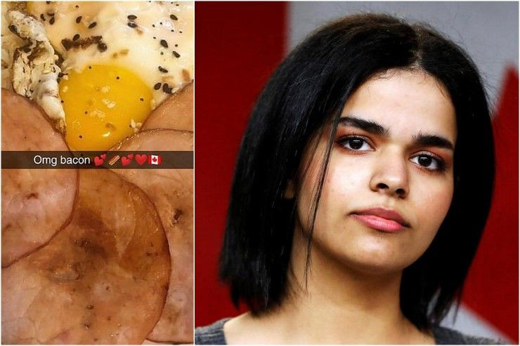 นางสาว ราฮาฟ โมฮัมเหม็ด อัล-คูนัน สาวซาอุดิอาระเบีย วัย 18 ปี ผู้เดินทางหลบหนีจากประเทศบ้านเกิด ไปลี้ภัยยังประเทศแคนาดาได้โพสต์ภาพพร้อมข้อความการเริ่มต้นชีวิตใหม่ในต่างแดน ด้วยการรับประทานอาหารเช้าในแบบฉบับแคนาดา