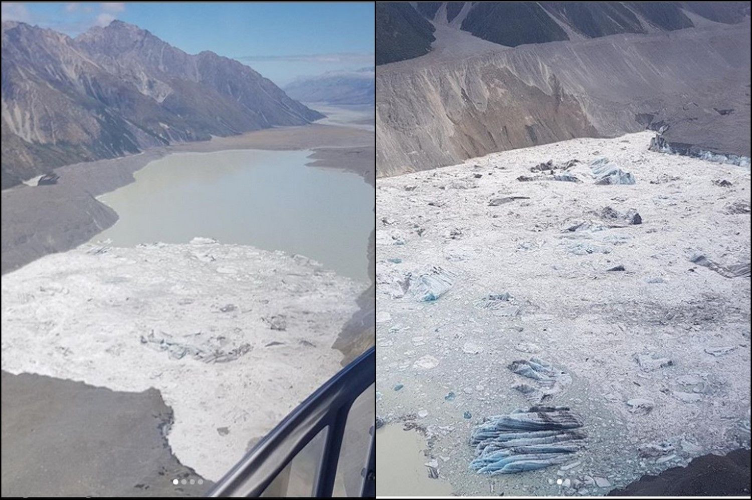 ในช่วงสองสามวันที่ผ่านมาเกิดปรากฏการณ์ครั้งสำคัญขึ้นบนเกาะใต้ของนิวซีแลนด์ นั่นก็คือการที่น้ำแข็งก้อนใหญ่หลุดออกมาจากธารน้ำแข็งแทสมัน ซึ่งเป็นธารน้ำแข็งที่ใหญ่ที่สุดของนิวซีแลนด์ ส่งผลให้น้ำในลำธารสูงขึ้นราว 2 เมตร ซึ่งปริมาณนี้ผู้วิจัยเกี่ยวกับธารน้ำแข็งคาดว่า ลำธารจากน้ำแข็งที่ไหลผ่านภูเขาอาโอรากิ/เมาท์คุก จะขยายออกไปอีกอย่างน้อย 1.5 กม.