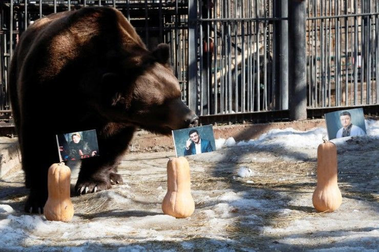 สวนสัตว์ในรัสเซียใช้น้องหมีสีน้ำตาลเลือกผลฟักทองทำนายผลเลือกตั้งผู้นำยูเครน