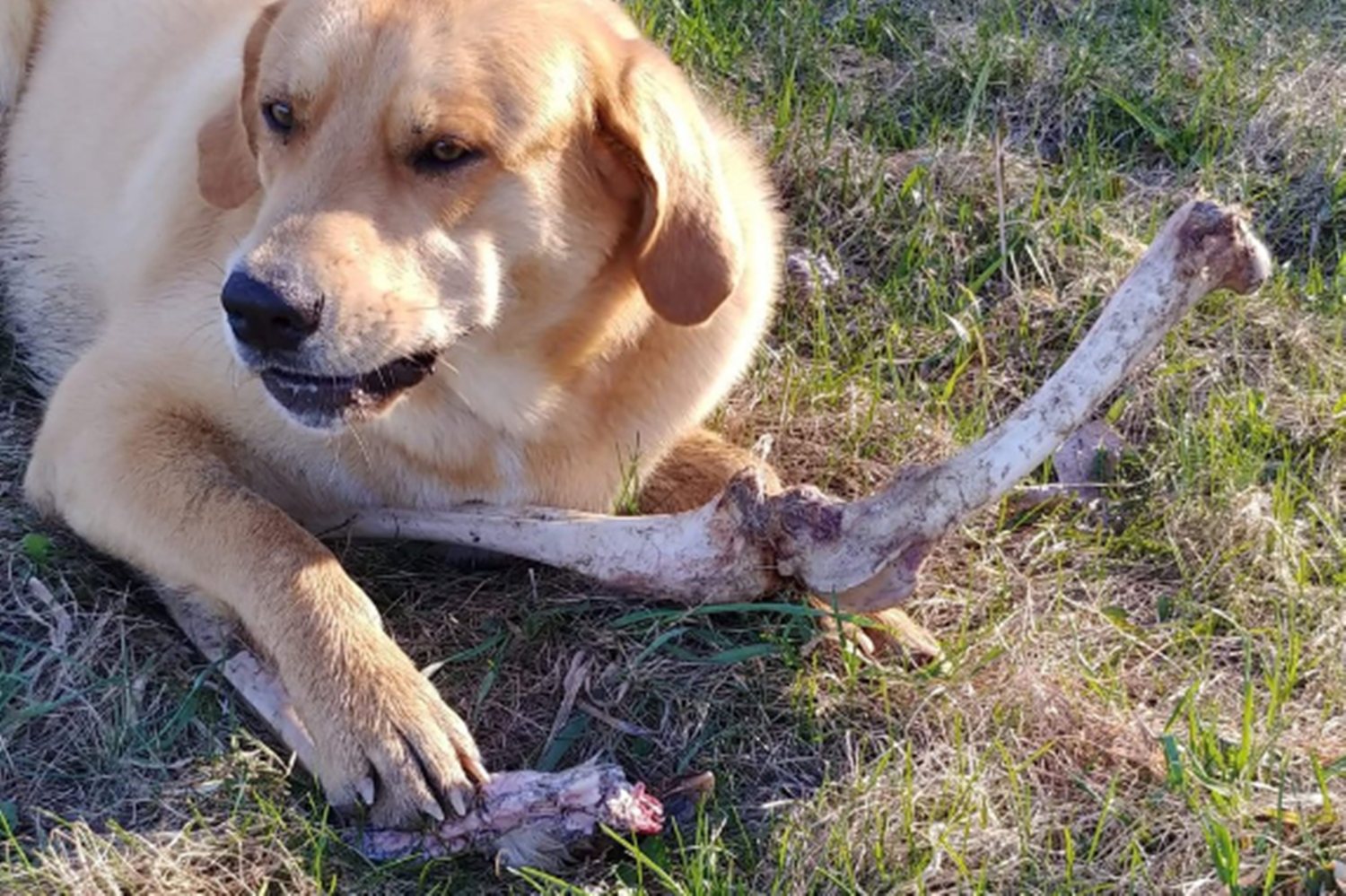 HOWEVER, a bear has learned that my furry son can be bought. This is the THIRD TIME he's been gifted deer bones in exchange for being allowed access to my trash, AND HE KEEPS DOING IT. pic.twitter.com/6NOKiFNLgm