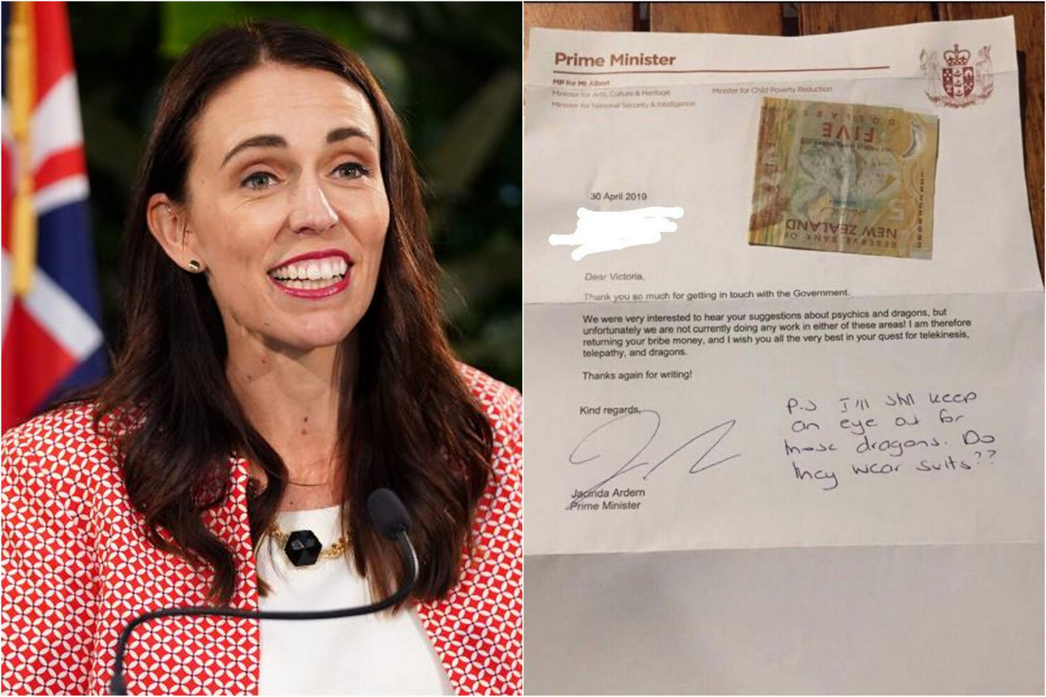 ภาพของจดหมายที่ตอบกลับโดยสำนักนายกนิวซีแลนด์ถูกโพสต์ผ่านเว็บไซต์ Reddit ช่วงสัปดาห์ที่ผ่านมา โดยเป็นภาพของจดหมายที่นายกนิวซีแลนด์ปฏิเสธจะรับเงินจำนวน 5 ดอลลาร์ที่หนูน้อยส่งมาให้เพื่อขอให้รัฐบาลของเธอทำโครงการศึกษาวิจัยเรื่องพลังจิตและมังกร เธอนางอาร์เดินชี้แจงว่า ขณะนี้รัฐบาลยังไม่มีโครงการวิจัยในเรื่องนี้ พร้อมทั้งอวยพรให้หนูน้อยประสบความสำเร็จในการศึกษาที่ตนเองสนใจ รวมถึงลงท้ายว่า "ป.ล. ฉันจะจับตาดูมังกรเหล่านี้ให้ .. มังกรพวกนี้ใส่สูทรึเปล่า"