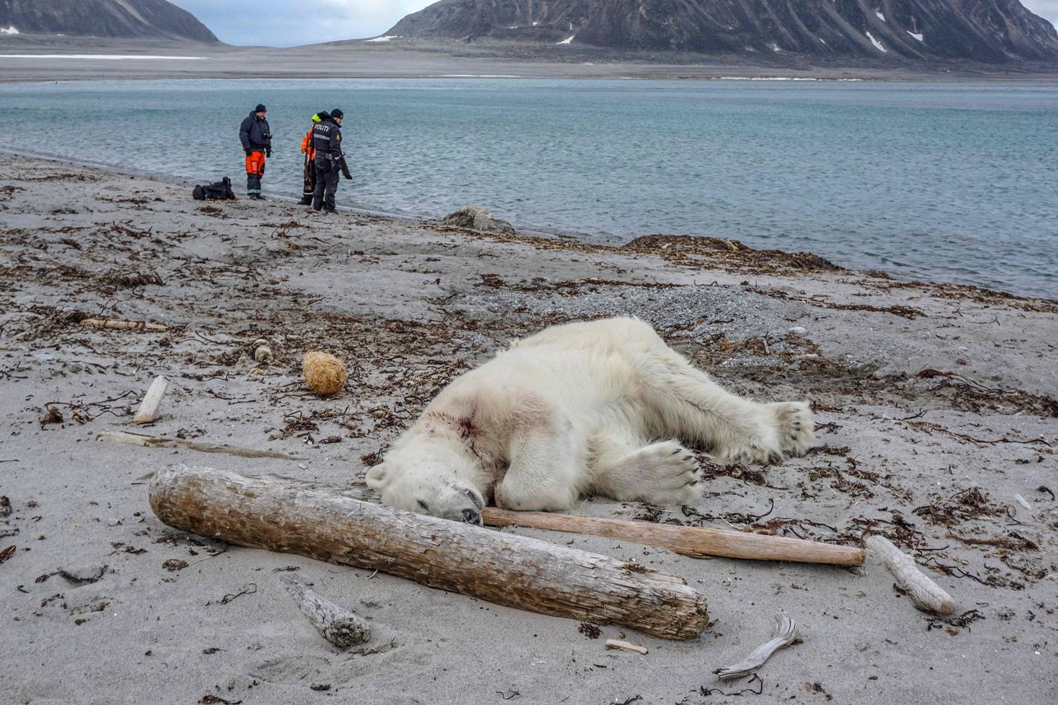 **หมายเหตุภาพประกอบเป็นหมีขั้วโลกที่ถูยิงตายในเขตขั้วโลก ประเทศนอร์เวย์ AFP PHOTO / NTB Scanpix / Gustav Busch ARNTSEN / Norway OUT