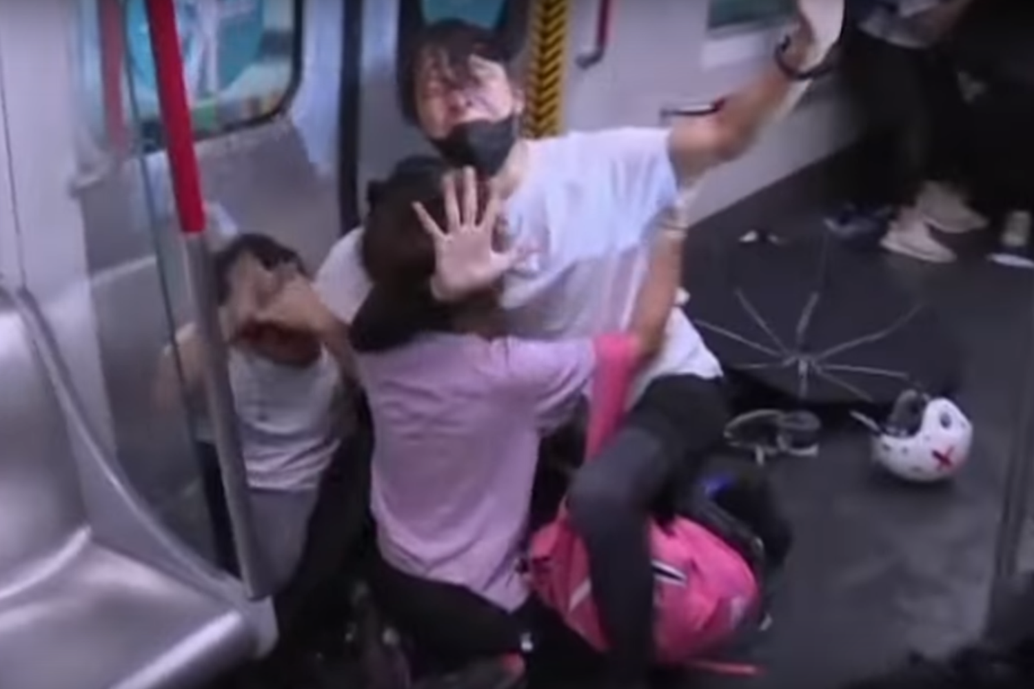 หลังจากที่ผู้ประท้วงในฮ่องกง รุมขว้างระเบิดขวดถล่มสำนักงานใหญ่ของรัฐบาล และจุดไฟเผาสิ่งของบนท้องถนนเมื่อ กลุ่มผู้ประท้วงได้เดินทางกลับโดยใช้เส้นทางรถไฟฟ้าใต้ดิน แต่ตำรวจได้บุกรถใต้ดินและปะทะผู้โดยสาร รุมตีผู้ประท้วงด้วยกระบองและพ่นสเปรย์พริกไทย