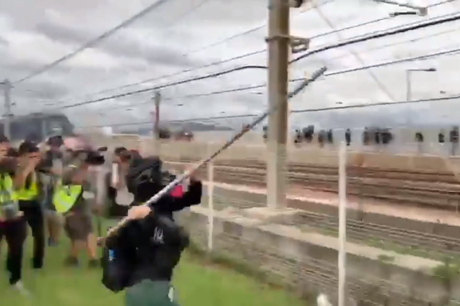 อันตราย! ม็อบฮ่องกงโยนท่อเหล็ก-ก้อนหินขวางรางรถไฟ