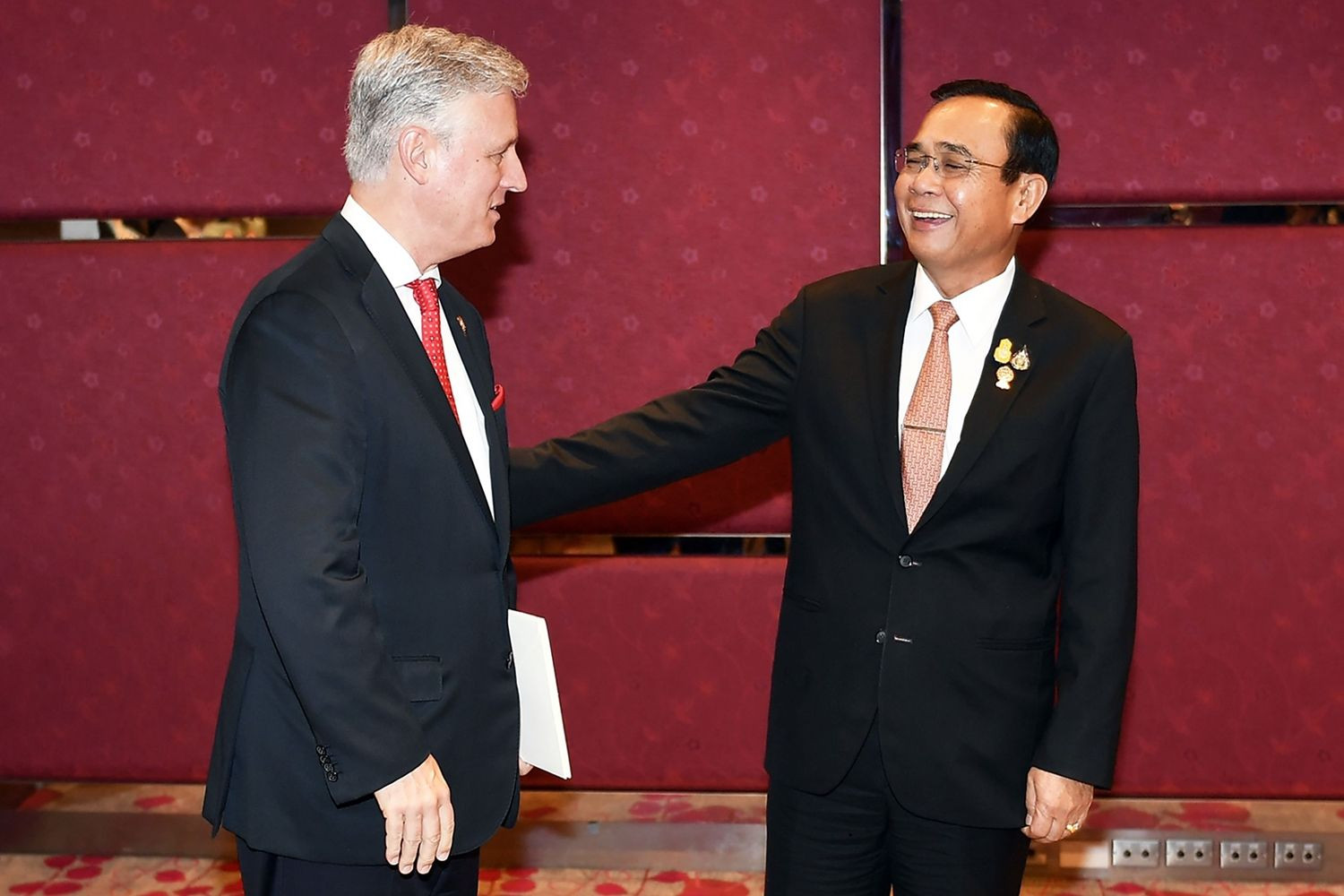 มีเพียงเจ้าบ้านคือพลเอกประยุทธ์ จันทร์โอชา นายกรัฐมนตรี และนายกรัฐมนตรีของเวียดนามและลาวเท่านั้นที่เป็นระดับผู้นประเทศ เข้าร่วมประชุมกับโอไบรอัน ผู้แทนที่ทรัมป์ส่งมา โดยเมื่อปีที่แล้วทรัมป์ส่งรองประธาน ไมค์ เพนซ์ไปร่วมการประชุมสุดยอดอาเซียน ซึ่งก็ยังถือว่าเป็นระดับผู้นำประเทศ