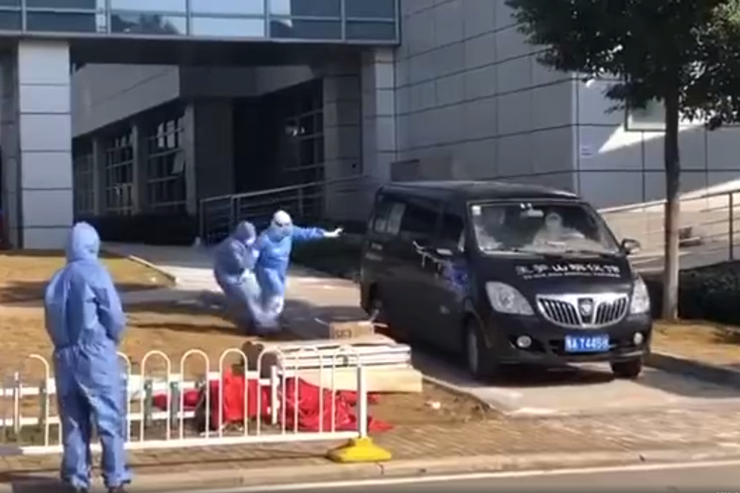ภาพน่าสะเทือนใจที่ถูกแชร์ไปทั่วโซเชียลเน็ตเวิร์กของจีน เป็นเหตุการณ์ขณะที่ภรรยาของนายแพทย์หลิวจี้อหมิง (Liu Zhiming) อดีตผู้อำนวยการโรงพยาบาลอู่ฮั่นอู่ชาง ในเมืองอู่ฮั่น พยายามยื้อรถที่บรรทุกศพของสามีกำลังเคลื่อนตัวออกจากโรงพยาบาล ด้วยเสียงร่ำไห้ที่น่าสงสารอย่างยิ่ง