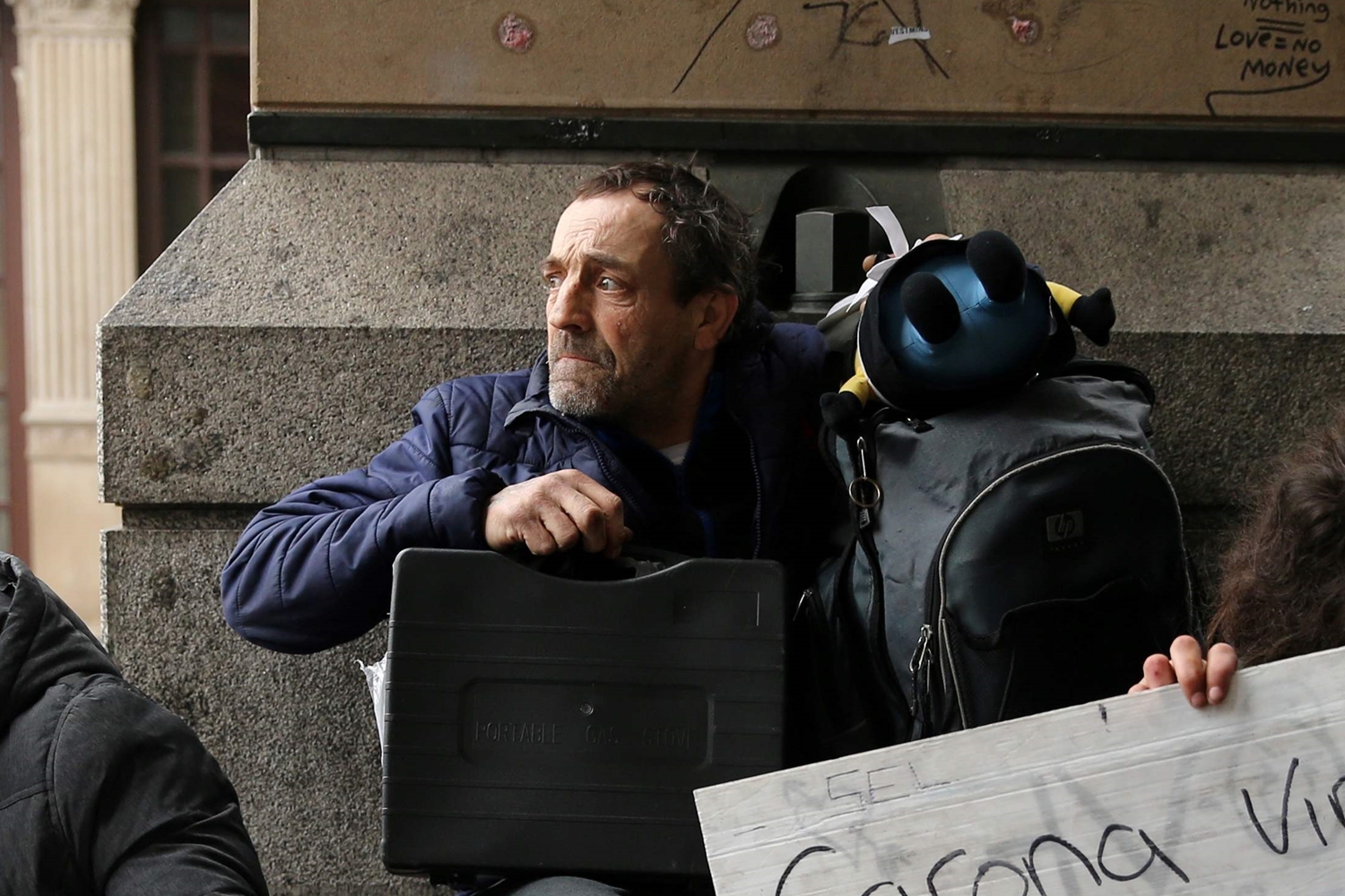 7. คนจรจัดในลอนดอนถือป้ายถามนายกรัฐมนตรีบอริส จอห์นสันว่า "แล้วพวกเราล่ะบอริส - เราต้องกักกันหรือเปล่า ช่วยด้วย!" และ "โคโรน่าไวรัสทำให้การบริจาคให้เราหมดไป" เมื่อวันที่ 19 มีนาคม 2563 (ภาพถ่ายโดย ISABEL INFANTES / AFP)