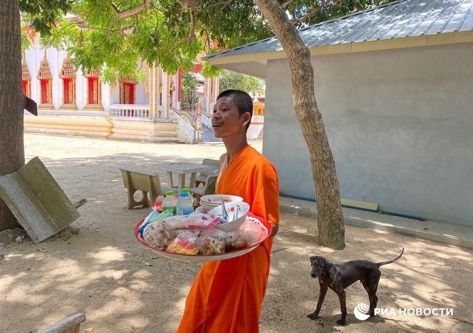 เฟซบุ๊กของสำนักข่าว RIA Novosti สื่อท้องถิ่นรัสเซีย ได้เผยแพร่ภาพพร้อมข้อความ ระบุว่าพระภิกษุหนึ่งรูปของวัดบนเกาะทางใต้ของไทย นำอาหารและขนมหวานที่ได้จากการบิณฑบาตรมาแบ่งปันให้แก่นักท่องเที่ยวรัสเซียที่ติดค้างอยู่บนเกาะ
