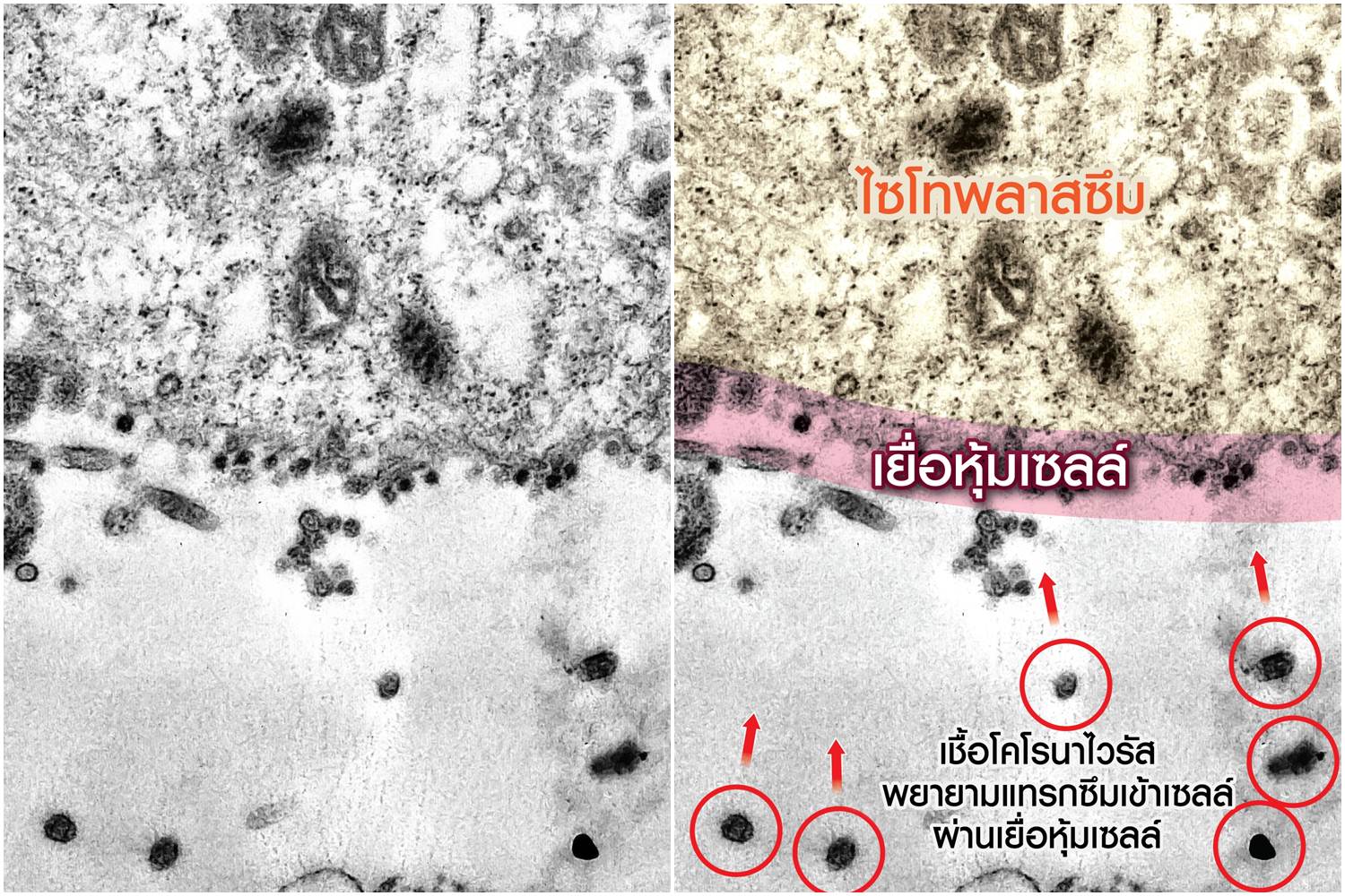 เผยครั้งแรก วินาทีเชื้อโคโรนาไวรัสโจมตีเซลล์ที่แข็งแรง