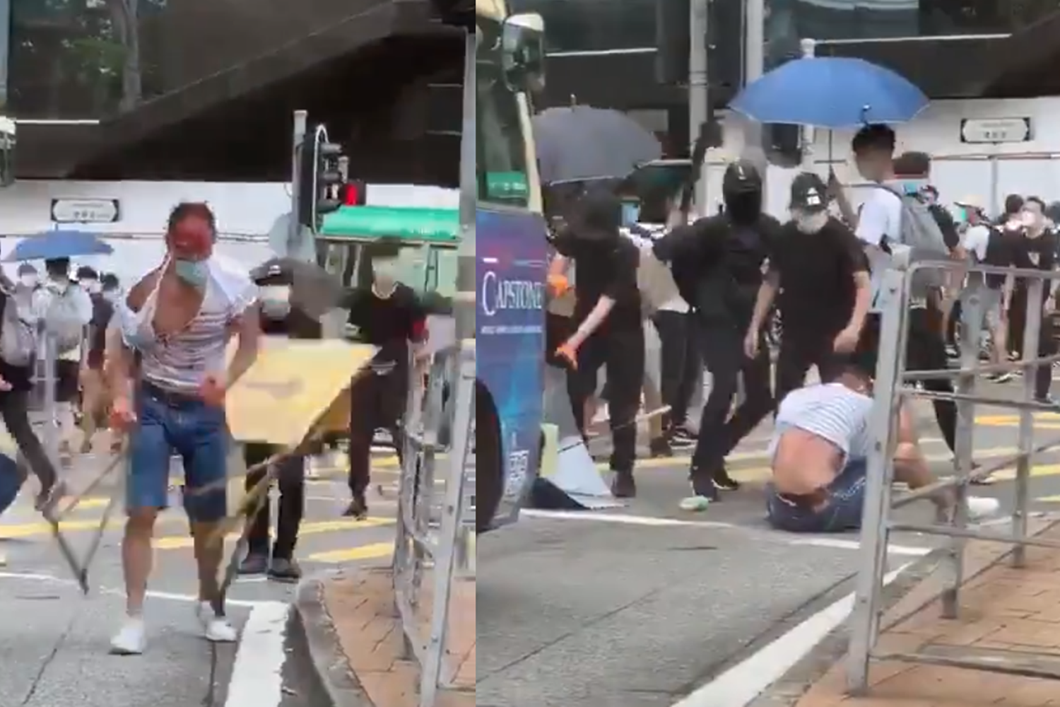 This video is being widely circulated on #socialmedia in #HongKong #China & does not help the #Hongkongprotest causeA lawyer was badly beaten on Sunday after an argument just a few streets away from protests over the proposed #nationalsecuritylaw pic.twitter.com/VMNZMPq5JK