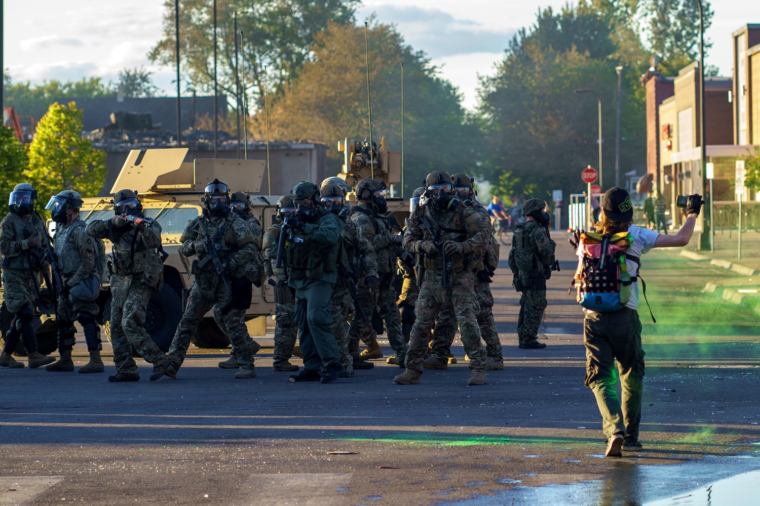 ก่อนหน้านี้ ทิม วอลซ์ ผู้ว่าการรัฐมินนิโซตาสั่งให้ทหารในหน่วย National Guard ราวๆ 2,500 - 13,200 นายออกมาปฏิบัติการควบคุมผู้ประท้วงในเมืองมินนีแอโพลิสที่ยืดเยื้อเป็นวันที่ 5 ติดต่อกันและกำลังจะย่างเข้าสู่วันที่ 6 นับเป็นเรื่องที่ไม่เคยเกิดขึ้นมาก่อนที่รัฐแห่งนี้ต้องเรียกทหารออกมารับมือวิกฤต
