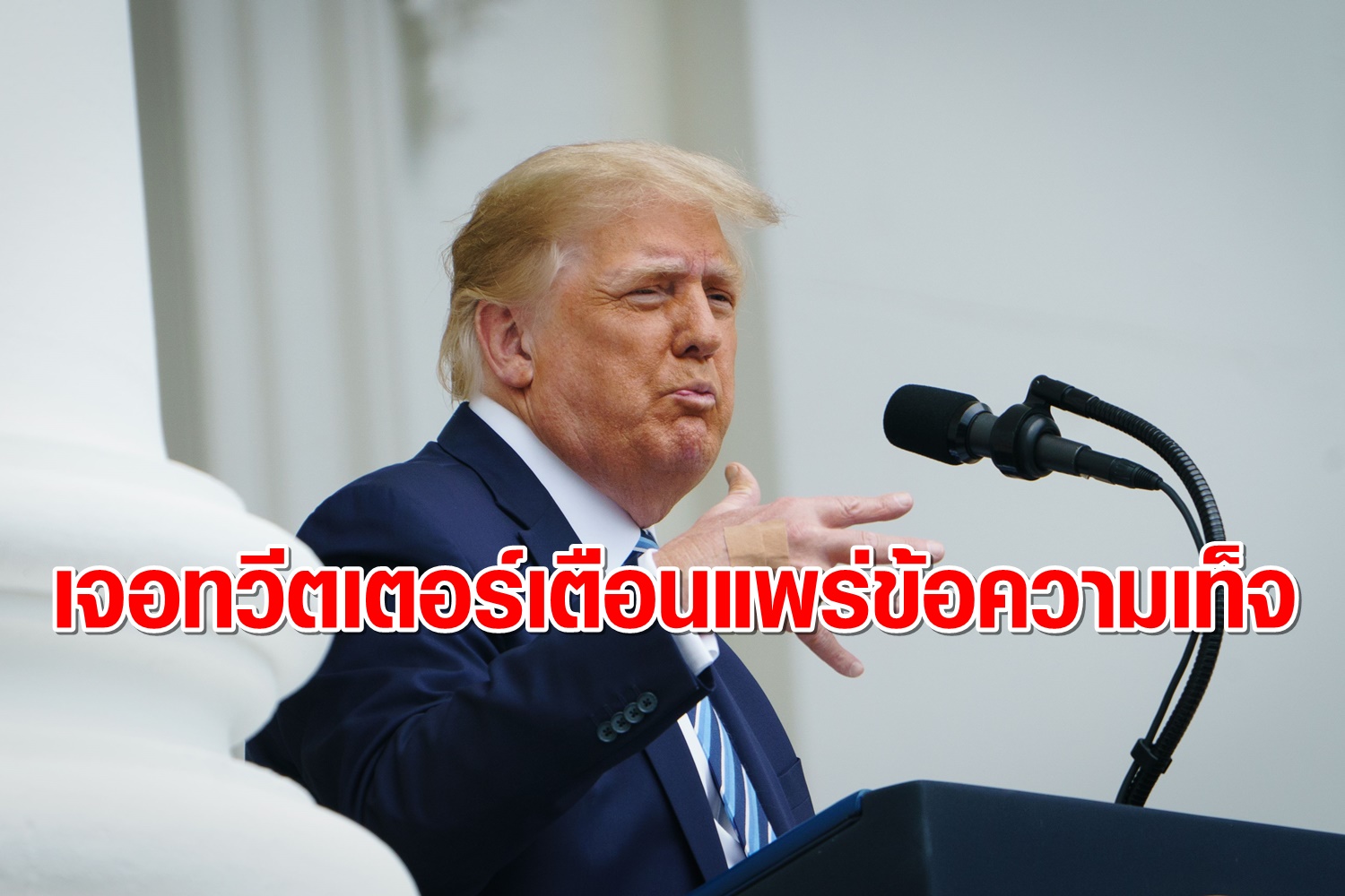 ทวิตเตอร์เตือน "ทรัมป์" ทวีตข้อความเข้าข่ายข้อมูลเท็จเรื่องโควิด
