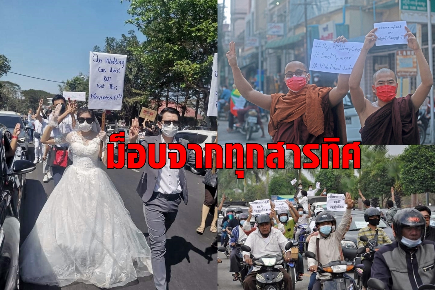 เก็บตกภาพบรรยากาศม็อบเมียนมารวมทั่วทุกสารทิศต้านเผด็จการ