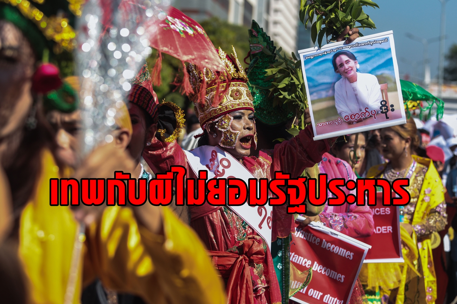 บรรดาคนทรง "นะ" พากันร่วมการชุมนุมประท้วงการรัฐประหารบางคนบอกว่าวิญญาณที่พวกเขาเป็นคนทรงให้ไม่ยอมรับการทำรัฐประหารครั้งนี้