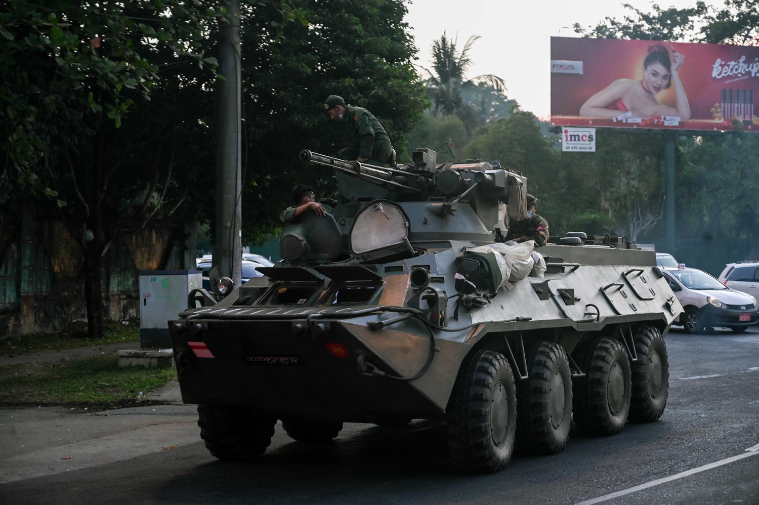 จากรายงานข่าวพบว่ามีการนำรถถังออกมาที่เมืองย่างกุ้ง ที่เมืองซิตตเวในรัฐยะไข่ เมืองเชียงตุงในรัฐฉาน ขณะนี้ยังไม่ทราบเหตุผลที่นำรถถังออกมาประจำการและวิ่งไปตามท้องถนนของเมืองต่างๆ แต่มีรายงาจากบางพื้นที่ว่าทางการสั่งให้ประชาชนอยู่แต่ในบ้านหลังจากที่ทหารเริ่มแสดงเขี้ยวเล็บครั้งแรกหลังทำรัฐประหาร