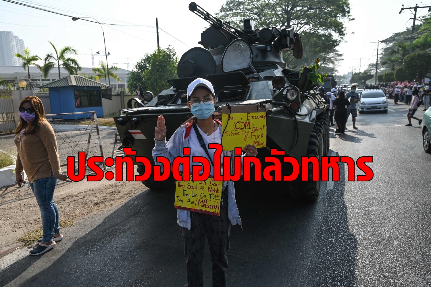 ม็อบเมียนมาไม่หวั่น ประท้วงต่อแม้ถูกตัดเน็ต-ส่งรถรบขู่