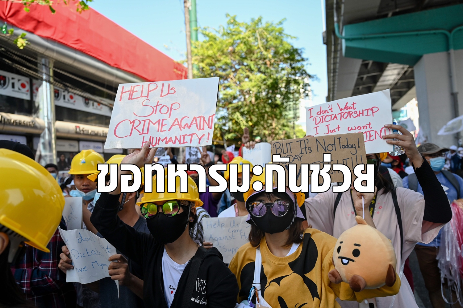 ม็อบเมียนมาวอนกองทัพสหรัฐช่วยแทรกแซงรัฐประหาร
