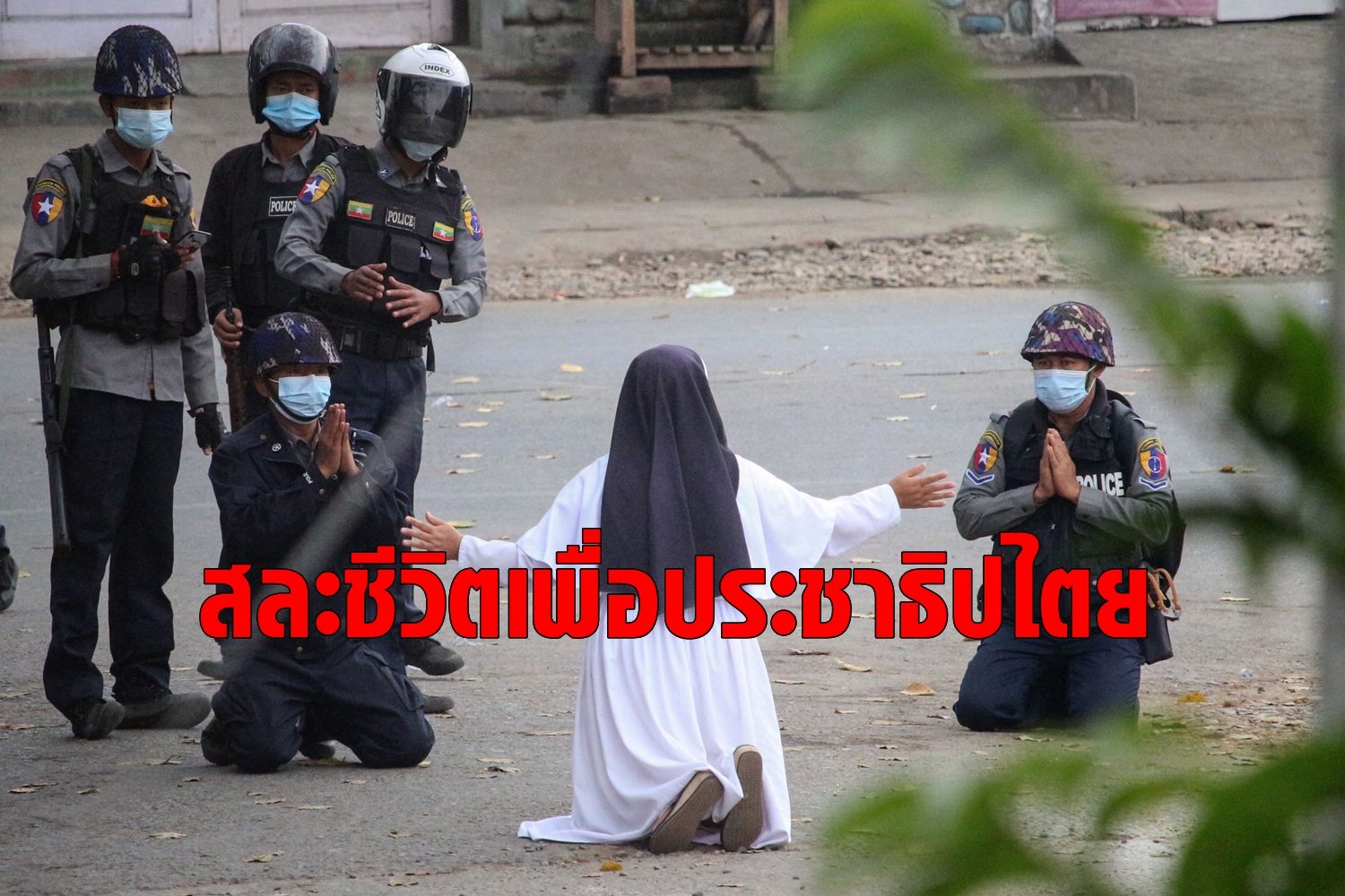 ภาพของแม่ชีที่คุกเข่าขอร้องเจ้าหน้าตำรวจเมียนมาไม่ให้ใช้ความรุนแรงต่อกลุ่มผู้ชุมนุมประท้วงกำลังถูกเผยแพร่ไปอย่างกว้างขวางบนโลกออนไลน์
