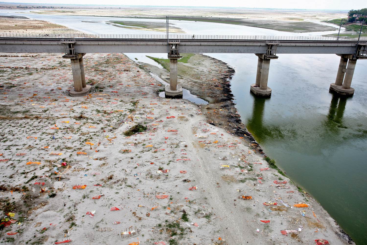 ภาพวิดีโอที่บันทึกจากโดรน เผยให้เห็นศพชาวอินเดียที่เสียชีวิตจาก Covid-19 ถูกนำมาฝังไว้บริเวณริมฝั่งแม่น้ำคงคา ในเมืองอิลลาฮาบัด รัฐอุตตรประเทศ เป็นจำนวนมาก เนื่องจากไม่มีที่ให้ประกอบพิธีฌาปนกิจ เมื่อฝนตกพัดทรายออกไป ศพที่ฝังไว้ตื้นๆ ก็โผล่ขึ้นมาให้เห็นอย่างชัดเจน