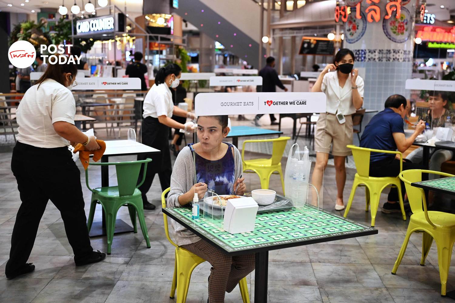 ขณะที่ในกรุงเทพมหานครและ 28 จังหวัดอื่นที่อยู่ในกลุ่มจังหวัดที่มีการระบาดรุนแรงที่สุดสามารถนั่งทานในร้านอาหารได้ 50-75% โดยต้องปิดร้าน 20.00 น. เช่นเดียวกับห้างสรรพสินค้า