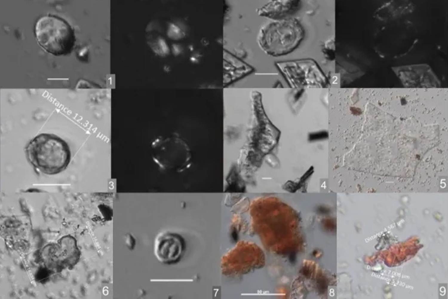 *หมายเหตุ ภาพจากสถาบันมรดกทางวัฒนธรรมและโบราณคดีมณฑลเหอหนาน : กลุ่มไมโครฟอสซิล อาทิ เม็ดแป้ง ไฟโตลิธ รา และยีสต์ ซึ่งสกัดจากตัวอย่างที่พบในแหล่งโบราณคดีหมู่บ้านหย่างเสา มณฑลเหอหนานทางตอนกลางของจีน