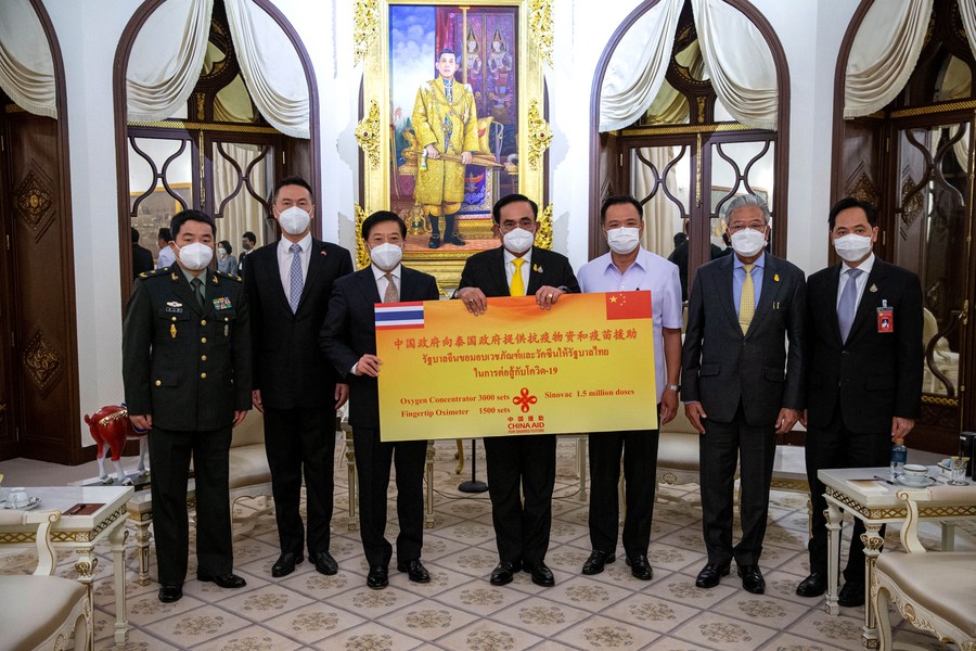 พลเอกประยุทธ์ จันทร์โอชา นายกรัฐมนตรีไทย ซึ่งเข้าร่วมพิธีรับมอบวัคซีนป้องกันโรคโควิด-19 และเวชภัณฑ์ข้างต้น ณ ทำเนียบรัฐบาล แสดงความขอบคุณจีนที่สนับสนุนไทยต่อสู้กับโรคระบาดใหญ่อย่างต่อเนื่อง และเผยว่าไทยพร้อมขยายความร่วมมือกับจีน โดยเฉพาะการวิจัยและพัฒนาวัคซีนป้องกันโรคโควิด-19
