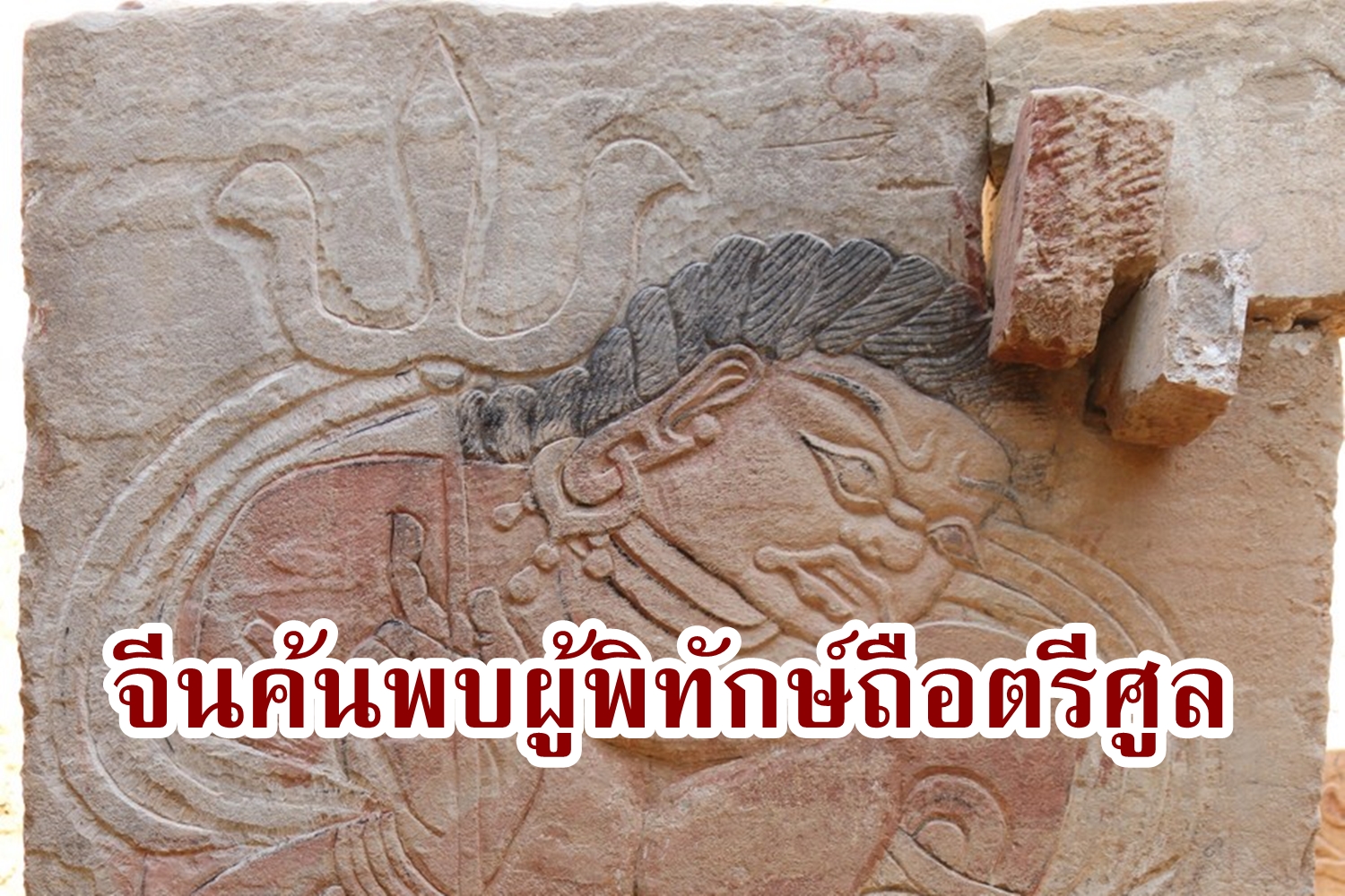 จีนพบรูปสลักโบราณหาชมยาก ‘ผู้พิทักษ์ถือตรีศูล’