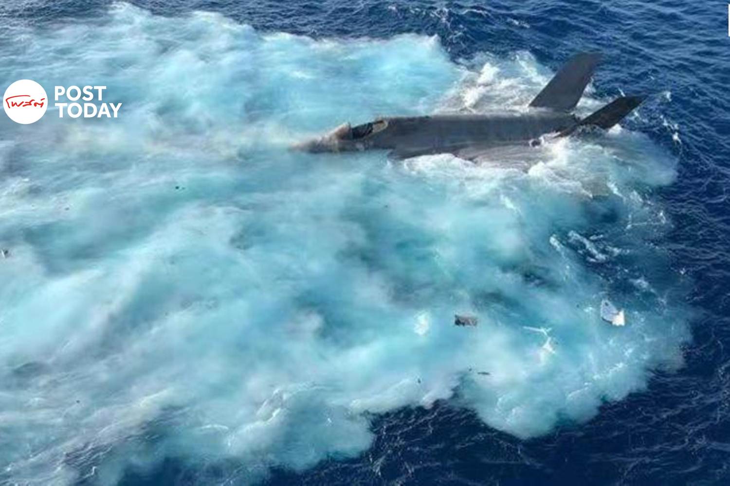 หลุดคลิปวินาทีเครื่องบินรบ F-35C ของสหรัฐตกในทะเลจีนใต้