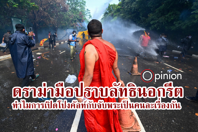Photo - ภาพประกอบไม่เกี่ยวกับเนื้อหา - พระภิกษุสงฆ์ดูตำรวจใช้แก๊สน้ำตาและกระบอกฉีดน้ำสลายนักศึกษามหาวิทยาลัยที่เรียกร้องการลาออกของประธานาธิบดีโคตาบายา ราชปักษา แห่งศรีลังกา เกี่ยวกับวิกฤตเศรษฐกิจของประเทศ ใกล้อาคารรัฐสภาในกรุงโคลัมโบ เมื่อวันที่ 6 พฤษภาคม พ.ศ. 2565 ภาพโดย ISHARA S. KODIKARA / AFP)