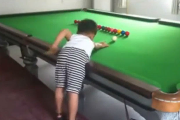 สุดเทพ! คลิปหนูน้อยชาวจีนวัย 3 ขวบ แทงสนุกเกอร์ได้แม่นยำราวมืออาชีพ
